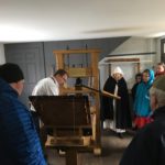 Three of us were guest printers at the Ephrata Cloister during Charter Day, a day when all PA state historic properties are open free. The day was very cold and the print shop there was only slightly better heated than at our Conestoga Press. It was also helpful to have something close to a production run on the new press to see what must be done to it to get it printing.